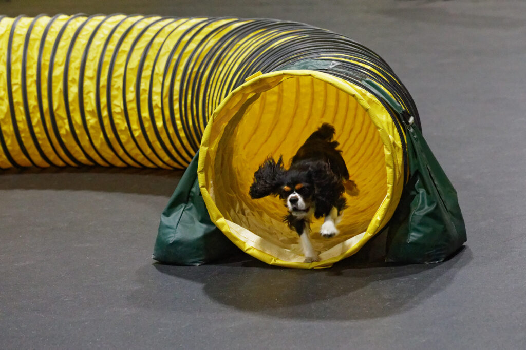 In the simplest form, dogs learn to handle obstacles. Jump over things, walk narrow planks and A-frames, run through tunnels, run over a teeter, and more. It builds confidence, fitness, and speed. Agility is a tremendous opportunity for you and your dog to connect while enjoying a dog sport. You direct the dog to the obstacles in a predetermined order. The dog hears your commands and reads YOUR body language while staying connected with you. This connection fosters incredible focus and engagement that transfers to other activities, including simple walks and hikes. Training agility is super fun! There is always something new to learn, which means there’s always something new to do. And while there is equipment that you need to practice, there is also a lot of flatwork that you can do without equipment. Often we hear “I can’t run,” but you don’t have to! The dog runs; you direct!
